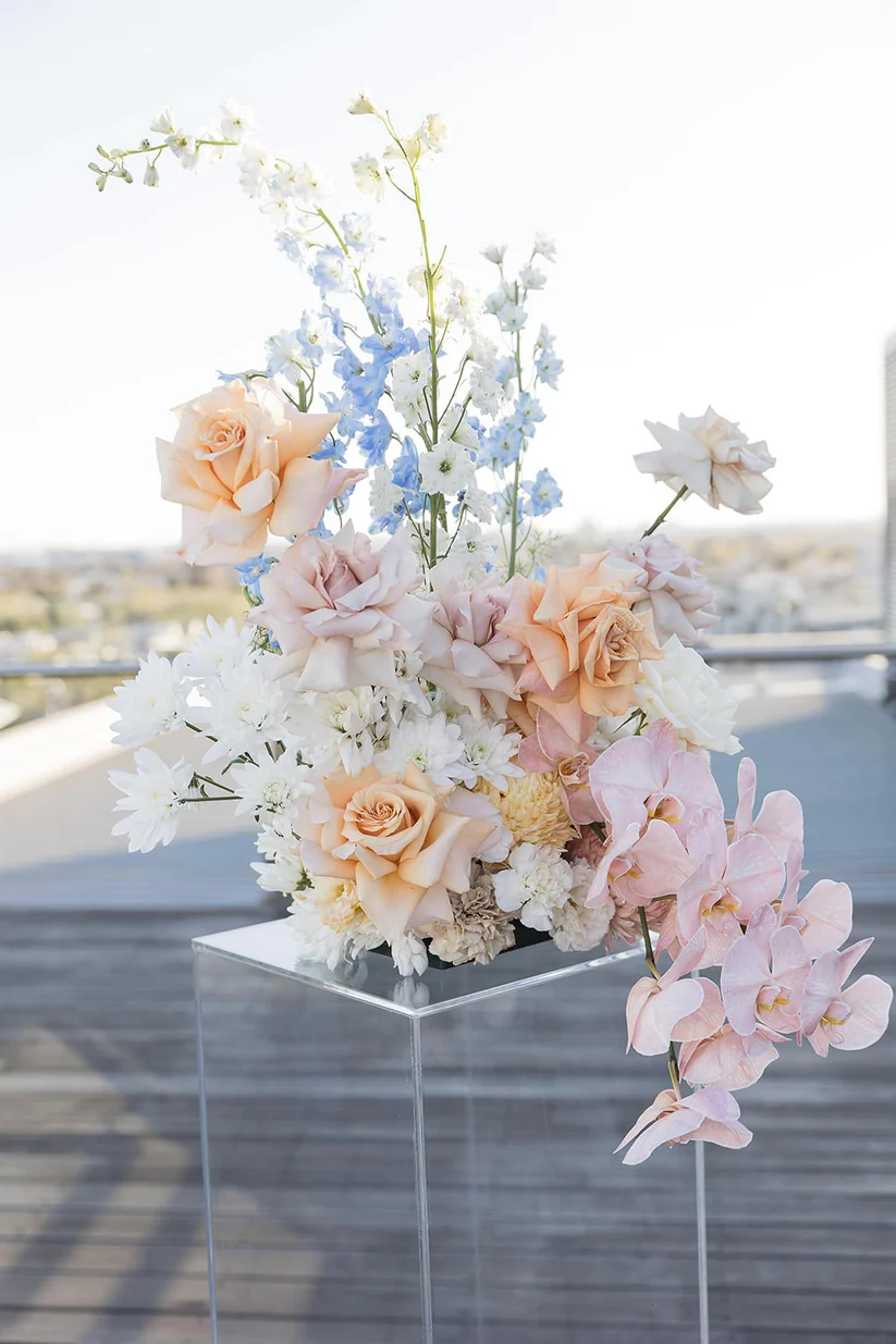 Whether you’re styling an intimate ceremony or a grand celebration, our plinths add to the stunning backdrop and helps you create a polished, unforgettable setting that looks incredible in person and in photos. With a choice of sleek metal stands, clear square or lush cream textured plinths.